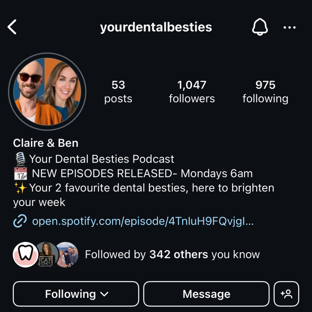 We are Ben & Claire and we come to you in the form of a NEW podcast. It is not your regular dental industry podcast. We are here to have FUN and brighten up your commute. We want you to love what you do, so we sometimes talk teeth but we always talk wisdom. Join us for a chat